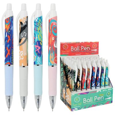 Guľôčkové pero FUNNY v pestrých farbách s modrou náplňou. Pero s plastovým telom a príjemným gumovým úchopom pre pohodlné písanie. Priemer mikrohrotu je 0,7 mm. Náhradná náplň: 98102; 98103