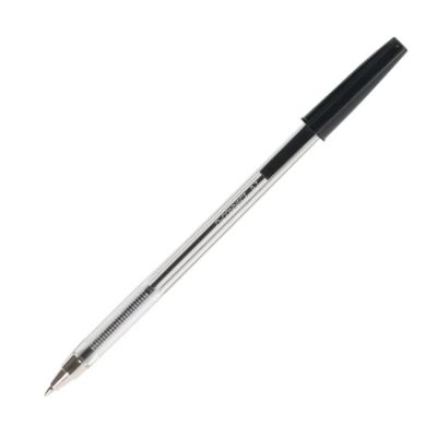 Jednorazové guľôčkové pero s priehľadným telom a viditeľnou farbou atramentu. Guľôčka 1 mm, širka stopy 0,7 mm. Väčšie balenie 20 ks v jednej farbe. Farba náplne čierna.
