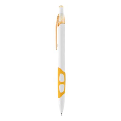 Guľôčkové pero s plastovým telom a ergonomicky tvarovaným gumovým úchopom. Priemer hrotu je 0.7 mm. Dodávané vo farbách: modrá, žltá, červená, biela. Náplň modrá. Jednorazová náplň.