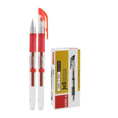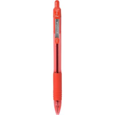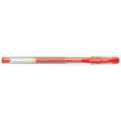 Gélové pero s transparentným telom a vrchnákom vo farbe náplne, priemer guľôčky 0,7 mm, farba červená.