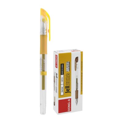 Jednorazový gélový roller s vlastnosťami uni Signo vo farbách kovov. Väčšie balenie 12 ks v jednej farbe. Guľôčka 0,8 mm, šírka stopy 0,5 mm. Farba: zlatá