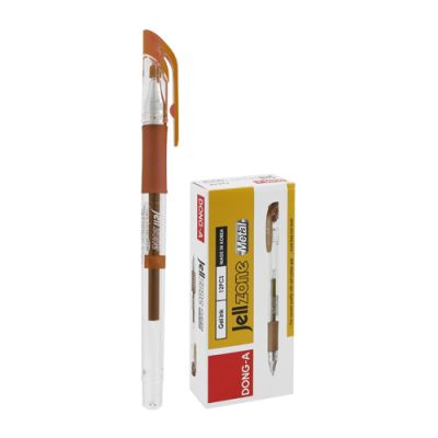 Jednorazový gélový roller s vlastnosťami uni Signo vo farbách kovov. Väčšie balenie 12 ks v jednej farbe. Guľôčka 0,8 mm, šírka stopy 0,5 mm.Farba: bronzová