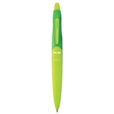 Jednorazové guľôčkové pero s priehľadným telom a viditeľnou farbou atramentu. Guľôčka 1 mm, širka stopy 0,7 mm. Väčšie balenie 20 ks v jednej farbe. Farba náplne zelená.