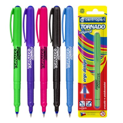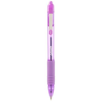 Perá s gélovým atramentom a priehľadným telom, ktoré umožňuje kontrolovať stav náplne. Uzáver a klip vo farbe atramentu. Vodeodolný a nevyblednuteľný atrament, guľôčka 0,8 mm šírka stopy 0,5 mm. 4 fluorescenčné klasické farby.
