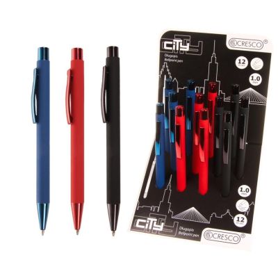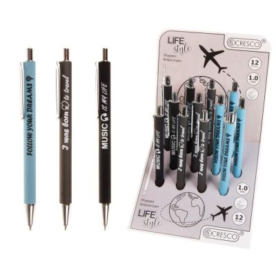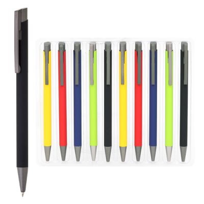 Guľôčkové pero s plastovým telom a ergonomicky tvarovaným gumovým úchopom. Priemer hrotu je 0.7 mm. Dodávané vo farbách: modrá, žltá, červená, biela. Náplň modrá. Jednorazová náplň.