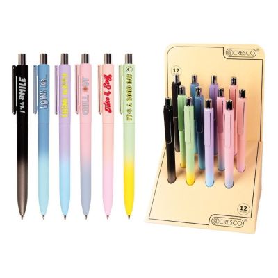 Guľôčkové plastové pero Jelly Party v pastelových farbách s modrou náplňou. O príjemný pocit z písania sa stará 0,5 mm hrubá modrá náplň. Náhradná náplň, kód: 0512.