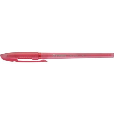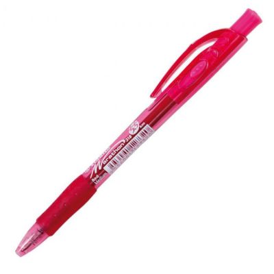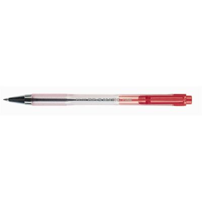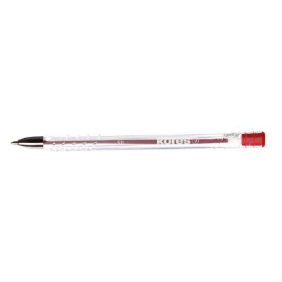 Jednorazové guľôčkové pero s priehľadným telom a viditeľnou farbou atramentu. Guľôčka 1 mm, širka stopy 0,7 mm. Väčšie balenie 20 ks v jednej farbe. Farba náplne červená.