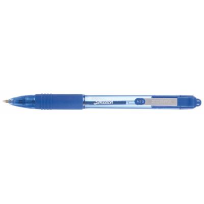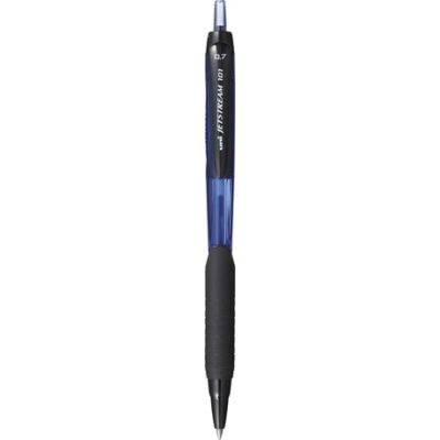 Jednorazové pero s priehľadným čírym telom modrej farby a tvarovaným vrubkovaným úchopom. Šírka stopy 0,7 mm.
