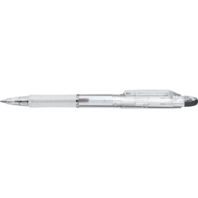 Gélové pero s transparentným telom a vrchnákom vo farbe náplne, priemer guľôčky 0,7 mm, farba čierna.