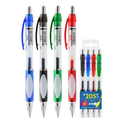 Pultový, plastový stojan obsahuje: AKPH3573 - 18 ks (4-farebné /0,5 mm) modrá, červená, čierna, zelená AKPK6871 - 18 ks (3-farebné /0,38 mm) modrá, červená, čierna vzorka - 2 ks Vlastnosti: stlačací mechanizmus gumový úchop zabraňuje kĺzaniu pri písaní guma na vrchnom konci pera náhradné náplne: nie sú skladom