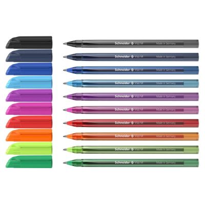Jednoduché guľôčkové pero Schneider Tops 505 M jednorazové, písanie bez rozmazávania. hrúbka čiary približne 0,5 mm (hrot M) stredný farba viečka zodpovedá farbe atramentu hladina atramentu je viditeľná cez priehľadné telo telo pera má šesťhranný tvar hrot z nehrdzavejúcej ocele odolný voči opotrebovaniu plne využiťeľná veľkoobjemová náplň