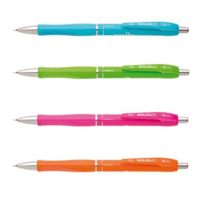Obľúbené guľôčkové pero SOLIDLY, ktoré sa predáva v troch tmavých farbách, akými sú čierna, modrá a hnedá. Telo je vyrobené z plastu, ale obsahuje tvarovaný gumový úchop. Vymeniteľná náplň modrej farby s mikrohrotom, šírka stopy 0,5 mm. Náhradná náplň: 0512