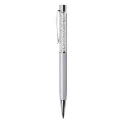Guľôčkové pero, s bielymi krištáľmi, 14 cm, Crystals from SWAROVSKI®, strieborná