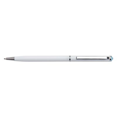 - guľôčkové pero s krištáľmi v dolnej časti tela - biela farba tela, 13,5 cm - kovové pero, popisovateľné, gravírovateľné laserom - s vymeniteľnou náplňou, farba náplne: modrá - hrúbka písma: 0,7 mm obj. kód náplne: TSWTB012