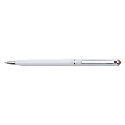 biele-strieborné telo pera 14 cm kovové pero, gravírovateľné farba krištáľu: light siam červená vymeniteľná náplň farba náplne: modrá hrúbka písma: 0,7 mm