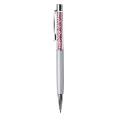 Elegantné vyhotovenie, vysoká kvalita, guľôčkové pero plnené originálnymi krištáľmi Swarovski®. Telo pera je kovové, možné označiť logom, laserovo gravírovať. Elegantný darček pre súkromné osoby a firmy. Farba tela pera: krémová biela Farba kryštálov: ružová Farba náplne: modrá Hrúbka čiary: 0,7 mm Balenie: v elegantnej darčekovej krabičke