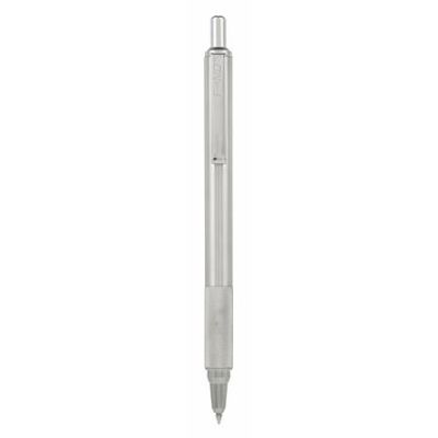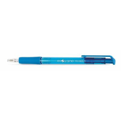 Jednorazové pero s priehľadným čírym telom modrej farby a tvarovaným vrubkovaným úchopom. Šírka stopy 0,7 mm.