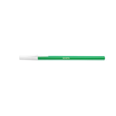 Jednorazové guľôčkové pero s priehľadným telom a viditeľnou farbou atramentu. Guľôčka 1 mm, širka stopy 0,7 mm. Väčšie balenie 20 ks v jednej farbe. Farba náplne zelená.