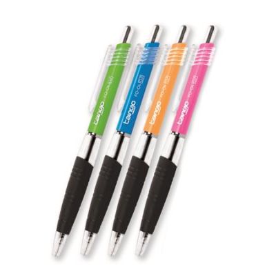 Guľôčkové pero AB1603 s farebným plastovým telom, s príjemným gumovým úchopom pre pohodlné písanie. Priemer hrotu 0,7mm, stláčací mechanizmus, farba náplne modrá. V ponuke ako mix 4 farieb. Náhradná náplň: 0590