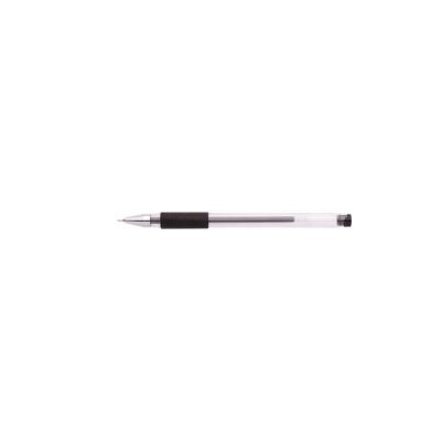 Gélové pero s transparentným telom a vrchnákom vo farbe náplne, priemer guľôčky 0,7 mm, farba čierna.