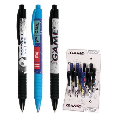 Guľôčkové pero s plastovým telom a potlačou so série GEO v troch dizajnoch. náplň modrá šírka hrotu 1,0 mm gumový úchop pre pohodlné písanie Náhradná náplň, kód: 0590 Balenie obsahuje 36 ks pier.Cena je za 1 kus.