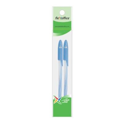 Guľôčkové pero, 0,25 mm, stláčací mechanizmus, 2 ks/blister, FLEXOFFICE "Jonat", modré
