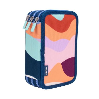 Peračník MILAN Sunset (západ slnka) 2 poschodový, naplnený. Obsah peračníka: 18 fixiek s kónickou špičkou12x trojuholníkové farebné ceruzky1x guľôčkové pero (modré)1x HB grafitová ceruzka1x pravítko 15 cm1x AFILA strúhadlo2x syntetická guma Hmotnosť: 0,48 kg 'Ripstop' tkanina na zadnej strane: ľahká a odolná proti roztrhnutiu a roztrhnutiu. Používa špeciálnu techniku, ktorá v pravidelných intervaloch tká hrubé výstužné nite a vytvára tak krížový vzor. Zloženie látky: polyesterová vonkajšia tkanina a vnútorná podšívka.