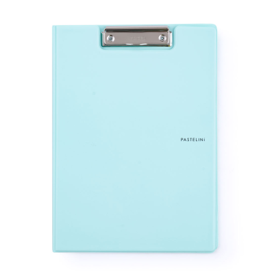Plastová písacia podložka v moderných pastelových farbách s kovovým klipom na dokumenty formátu A4. Materiál: z pevného PP. Dá sa zavesiť. Farba: pastelovo modrá.