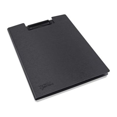 Uzatvárateľná písacia podložka s kovovým klipom, vyrobená z extra pevnej lepenky.Vnútorné priehľadné vrecko.