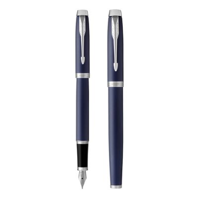 Pero plniace PARKER IM Blue CT -F-. Parker IM je ideálny partner s neobmedzenými možnosťami. Je elegantný aj vysokoprofesionálny a spoľahlivý. Ponúka odolný hrot z ušľachtilej nerez ocele, širokú paletu pevedení inšpirovaných tradíciou značky Parker, užívateľské pohodlie aj maximálnu výkonnosť. Mosadzné telo a vrchnák s lesklou lakovanou povrchovou úpravou. V kombinácii s doplnkami pokovovanými chrómom, s leštenou úpravou. Hrot z ušľachtilej nerez ocele.