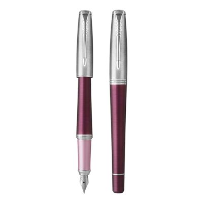 Modelová rada Urban, to je osobitný štýl a mimoriadny výkon. Vizuálne nápadný Urban poúva tradičné hranice značky Parker a nastavuje nové pravidlá moderného písania. Nezameniteľné dizajnové rysy a široká paleta prevedenia robí z Urbanu skvelý módny doplnok, ktorý podporí Vašu sebaistotu v každej situácii. Metalické purpurové telo z brúseného eloxovaného hliníka, svetlo purpurový úchop upravený pieskovaní a brúsený mosadzný vrchnák pokovovaný chrómom. V kombinácii s doplnkami pokovovanými chrómom. Hrot z ušľachtilej nerez ocele.