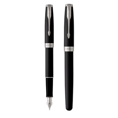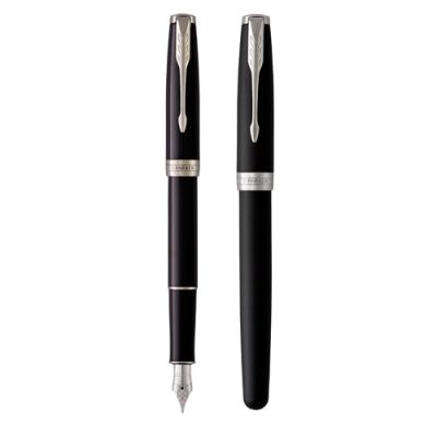Nadčasová elegancia modelu Sonnet, jeho vycibrený štýl aj rozmanité povrchové úpravy skvele nadväzujú na dizajnérsku tradíciu značky Parker. Sonnet je dokonalým zosobnením všetkého, čo PARKER vie najlepšie - majstrovské spracovanie hrotu z 18-karátového zlata, ideálne rozloženie hmotnosti pera aj starostlivé zostavenie jednotlivých, celkom 17 rôznych dielov. Modelová rada Sonnet je skutočne nadčasová - a zároveň vždy aktuálna. Matne čierno lakované telo a vrchnák. V kombinácii s doplnkami pokovovanými paládiom. Hrot z nerez ocele s krížovou rytinou.