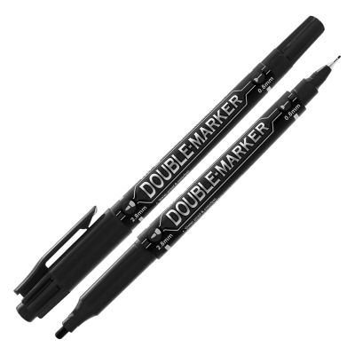 Obojstranný permanentný popisovač Double-Marker M&G. Permanentný atrament na báze liehu, odolný voči vode a vyblednutiu, rýchloschnúci. Píše na papier, gumu, kožu, plasty, kovy. Tenký hrot – šírka stopy 0,8 mm, hrubý hrot – šírka stopy 2,8 mm.