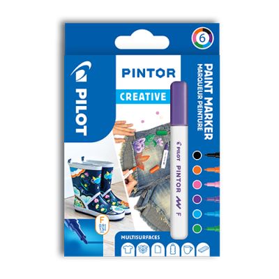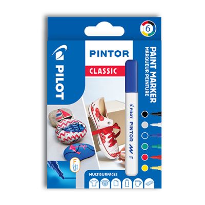Dekoračný popisovač od značky PILOT, patrí pod kategóriu ,,PINTOR CLASSIC". Sada šiestich základných farieb, akými sú čierna, biela, modrá, zelená, červená a žltá. Atrament je na vodnej báze s vysokým obsahom pigmentu, pre lepšie a sýtejšie farby. Jeho telo je v tvere šesťhranu pre efektívnejšie uchopenie do ruky. Popisovač je vhodný použiť na všetky možné povrchy. Na obale je presne uvedená, na aké povrchy ich môžete bez problémov použiť. Odolný vláknový hrot s priemerom 1 mm. Šírka stopy je až 4,5 mm. Stiahnite si návod k použitiu + získajte tipy & triky pre kreatívne použitie.