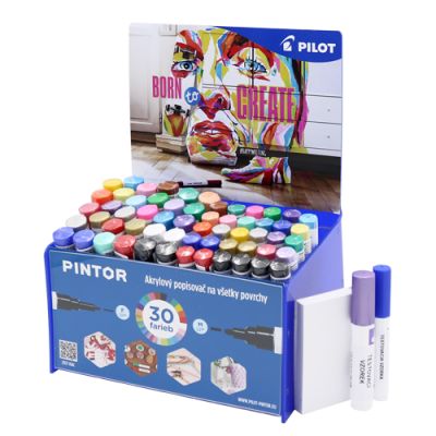Popisovač od značky PILOT, kategória ,,Born To Create". Stojan obsahuje 60 ks popisovačov, z toho je 24 rôznych farieb. V stojane sú obsiahnuté dve šírky stopy = dva typy hrotu. Popisovač je vhodný na všetky typy povrchov. Ako napríklad textil, drevo, plast, kameň, ...