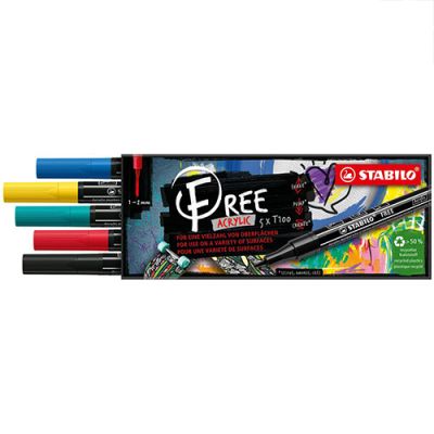 Akrylový popisovač STABILO FREE Acrylic T300 Okrúhly hrot 2-3 mm - Candy, sada 5 ks