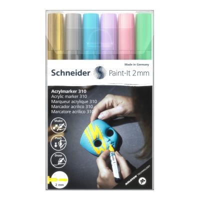 Akrylový popisovač, sada, 2 mm, SCHNEIDER "Paint-It 310", 6 rôznych farieb