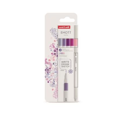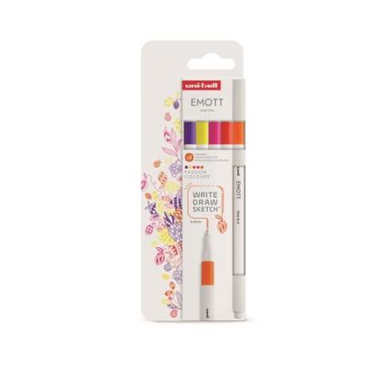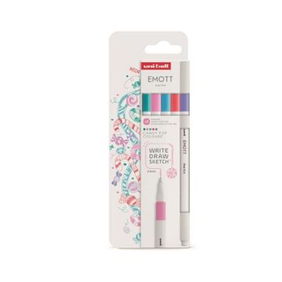 s 2 hrotmi: klasická fixka, a fixka v tvare štetca vodeodolný atrament farby v sade: fuksiová, nechtíková, citrusová, zelená, levanduľová, citrónová, broskyňová, koralová, cyánová, tmavosivá neblednúci atrament, vhodný na archivačné účely hrúbka písma: 0,5/0,7 mm