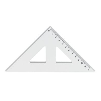 Trojuholník s ryskou, s pravítkom na pravej odvesne 16 cm, vyrobený z transparentného PVC. Kvaltný trojuholník, ktorý firma JUNIOR ponúka pod vlastnou značkou.