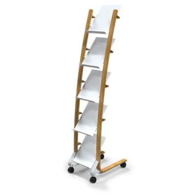 Držiak na katalógy, mobilný, 5 priehradiek, ALBA, drevo/biela