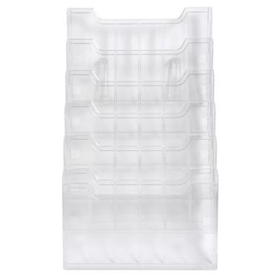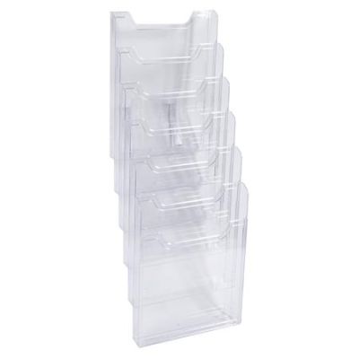Nástenný stojan na prospekty pre dokumenty formátu A4 ľahko upevniteľný pomocou háčika ideálny na informačné materiály a katalógy plastový na dokumenty formátu A4 priehľadný 6 priehradiek rozmery: 155 x 239 x 665 mm (š x v x h)