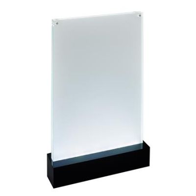 Stojan vhodný na prezentáciu ľubovoľných informácií s dobrou stabilitou. Vrchná časť vyrobená z kvalitného číreho akrylu, elegantný podstavec z hlíníka.Rozmery: 212x323x85 mm