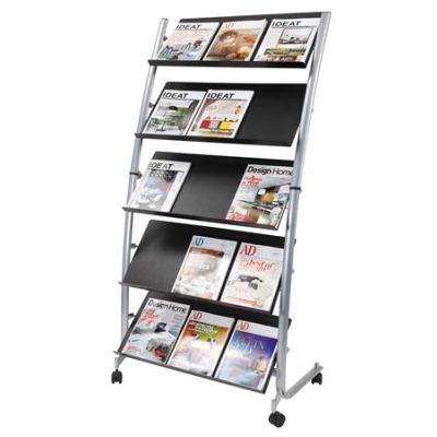 Stojan na katalógy, mobilný, 5 priečinkov, ALBA, sivý/čierny