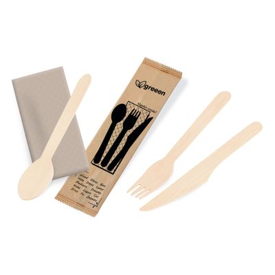 Príborová sada (drevená FSC 100%) nôž-vidlička-lyžica+obrúsok [50 sád]