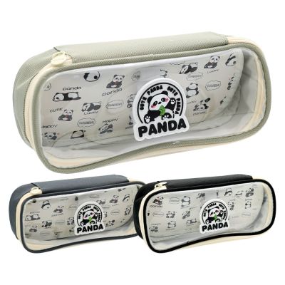Puzdro na písacie potreby Panda s chlopňou a priehľadným vekom, prázdne (mix farieb)