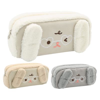 Hebučké puzdro s ušami zajačika a výšivkou očí v tvare srdiečok, určené na voľne ložené školské potreby (Béžové, Šedé). jedna priestranná komora so zipsom zip s kovovým ťaháčikom v tvare kruhu materiál: polyesterová podšívka, PU, plyš farebnú variantu vyberte v poli nad cenovkouCena je za 1 kus.
