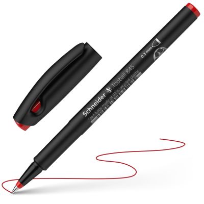 Roller v novom ergonomickom dizajne s jemným kovovým hrotom s guľôčkou z karbidu wolfrámu a nevysychajúcim atramentom (vydrží 14 dní bez vrchnáka). Šírka stopy 0,3 mm, dĺžka stopy 2200 m. Väčšie balenie 10 ks. Farba: červená
