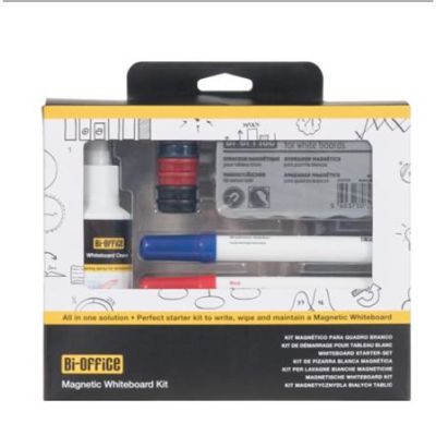 Čistiaca sada k bielym tabuliam: 1 x 125 ml čistiaca tekutina k tabuliam 1 x hubka na tabuľu 20 ks utierok 4 ks popisovače rôznych farieb 10 ks magnetiek