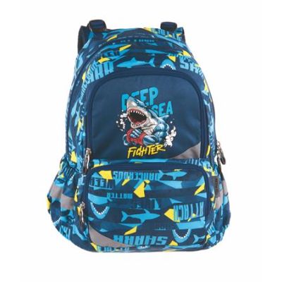 Praktický batoh pre školákov so spevnenou konštrukciou, dostatkom úložného priestoru a reflexnými prvkami pre bezpečný pohyb. Veľká hlavná priehradka na učebnice a školské potrebyJedno menšie predné vrecko a dve bočné vrecká (napr. na fľašu)Spevnené dno pre väčšiu stabilitu a odolnosťVystužený, prešívaný chrbát pre pohodlné nosenieNastaviteľné ramenné popruhy pre individuálne prispôsobenieReflexné prvky pre lepšiu viditeľnosť za zníženej viditeľnostiMateriál: PolyesterRozmery: 40 × 30 × 15 cmHmotnosť: cca 640 gObjem: cca 25 l