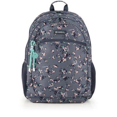 Školská taška, so zipsom, GABOL "Secret", sivá, s kvetinkovým vzorom
